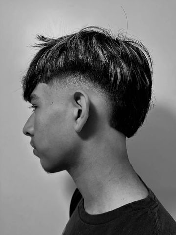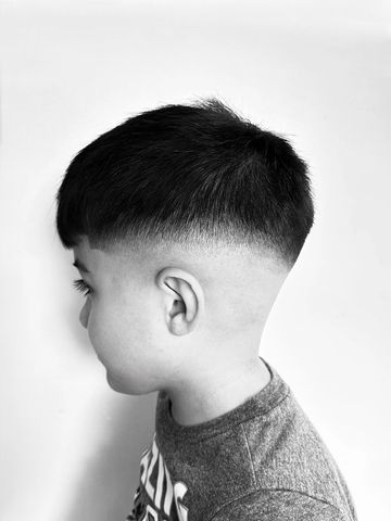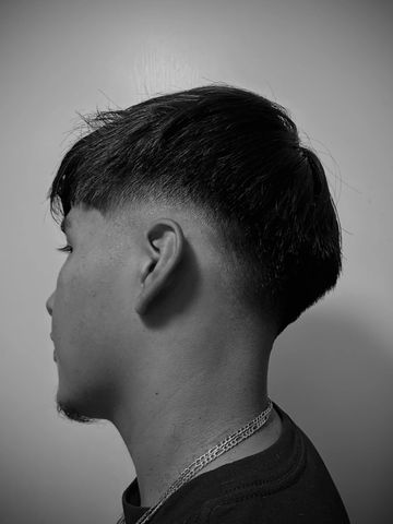 Side taper fade on the sides with a line up in the back.A side taper fade is a clean and stylish haircut that blends the hair on the sides gradually from longer to shorter, typically starting around the temples and fading down toward the ears.